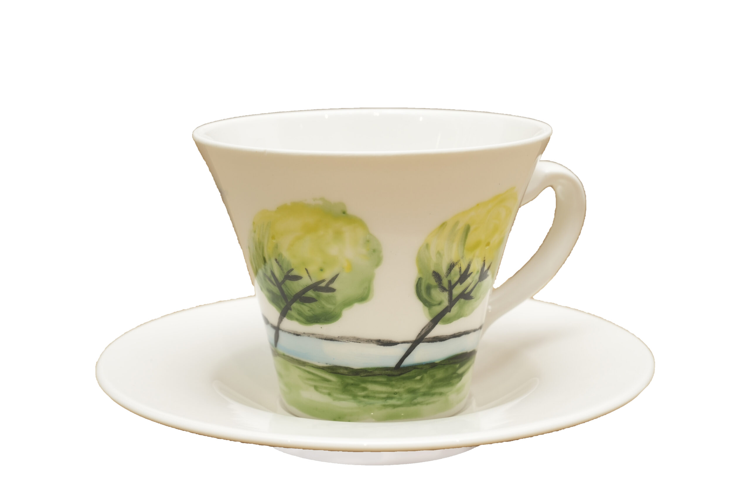 Idealnie pije się z niej codzienną kawę lub herbatę… Filiżanka ze spodkiem wykonane z najlepszej jakościowo porcelany Fine Bone China ecru w Zakładach Porcelany Stołowej” Karolina” w Jaworzynie Śląskiej. Był to jedyny w Polsce producent takiej porcelany. Cechuje ją kremowy odcień oraz wysoka przeświecalność. Na filiżance ręcznie malowany chopinowski krajobraz – powtórnie wypalony w temperaturze 840 stopni Celsjusza. Na spodku faksymile podpisu kompozytora. Można myć w zmywarce.
